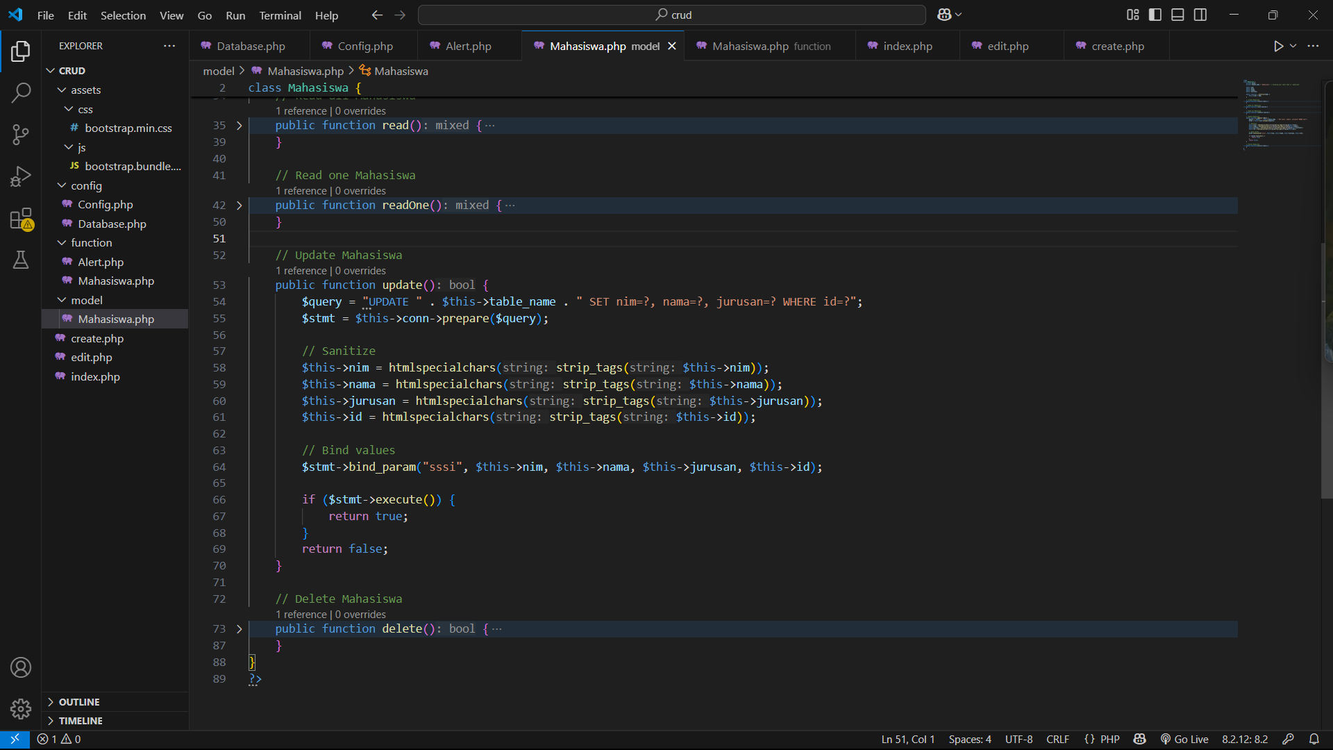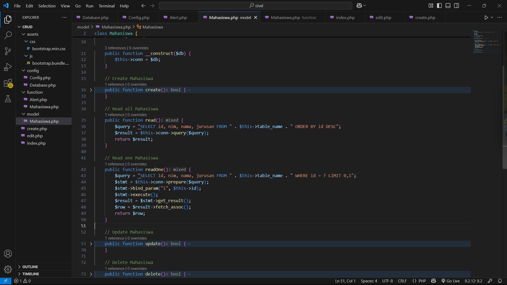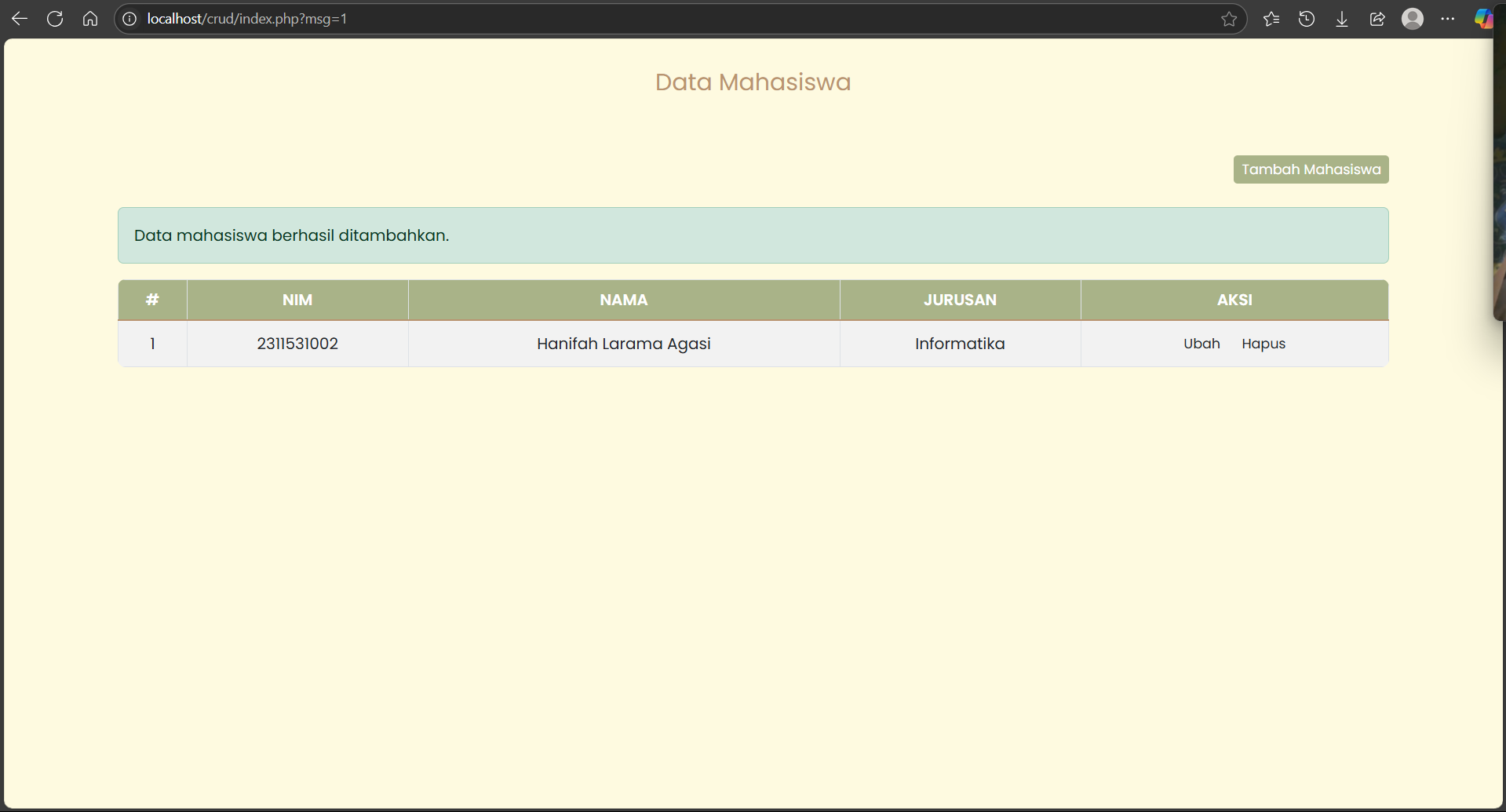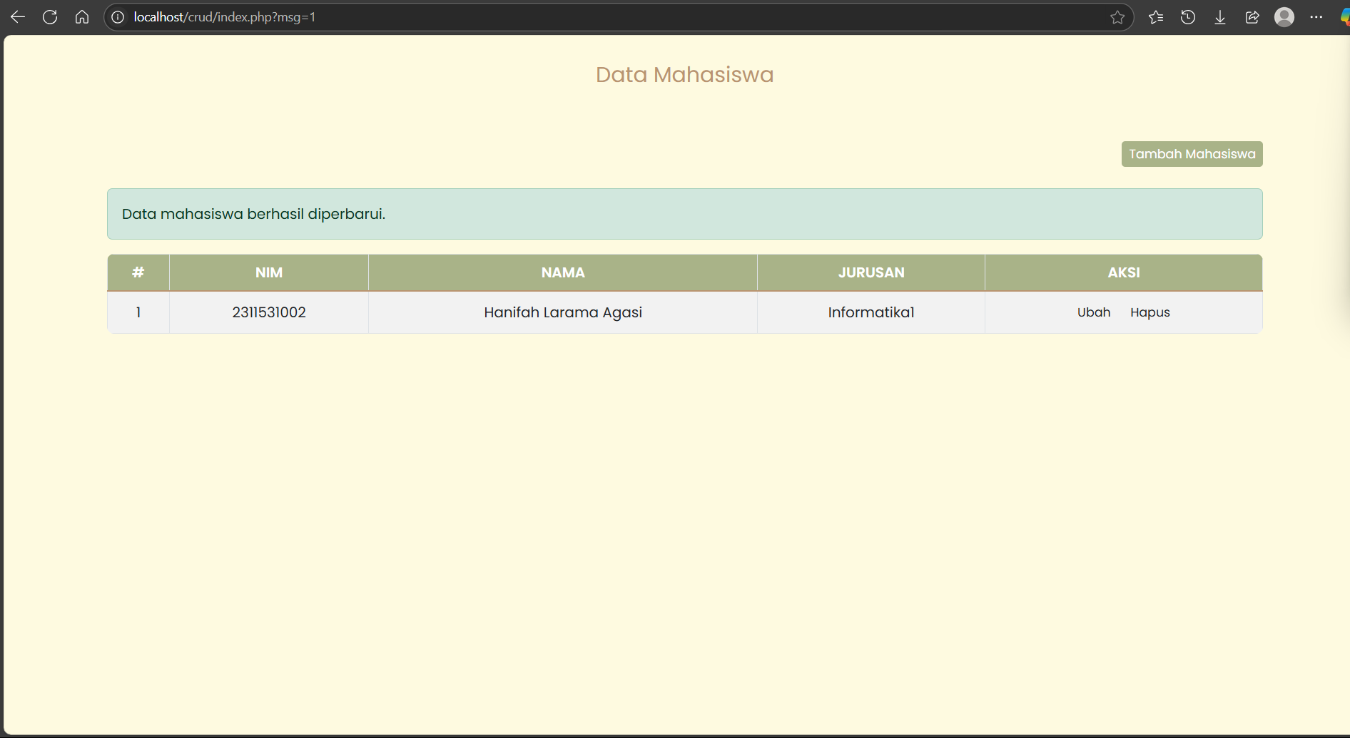 - Fungsi read untuk menampilkan data mahasiswa