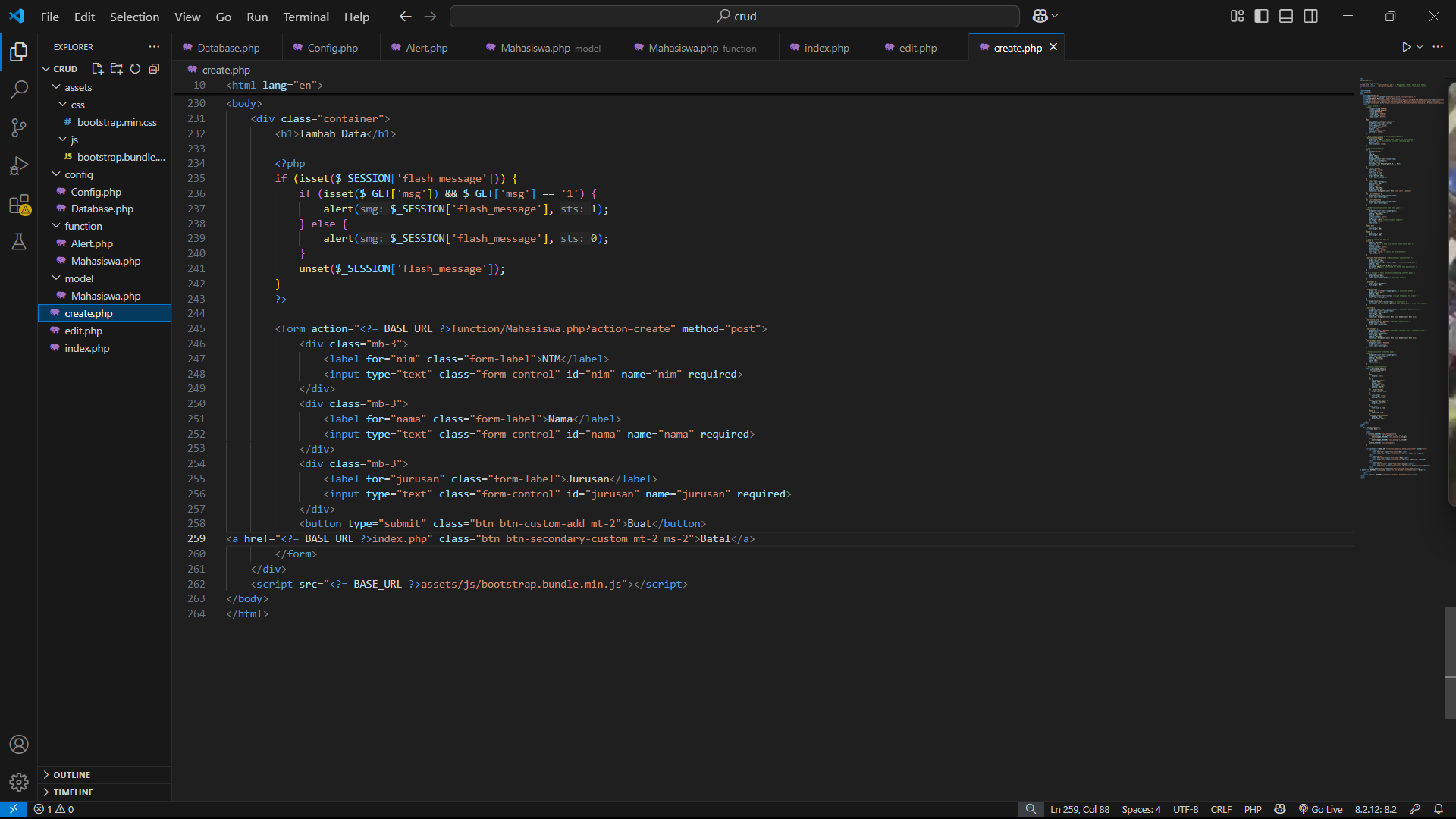 - Fungsi create yang nantinya digunakan untuk menambahkan data mahasiswa
