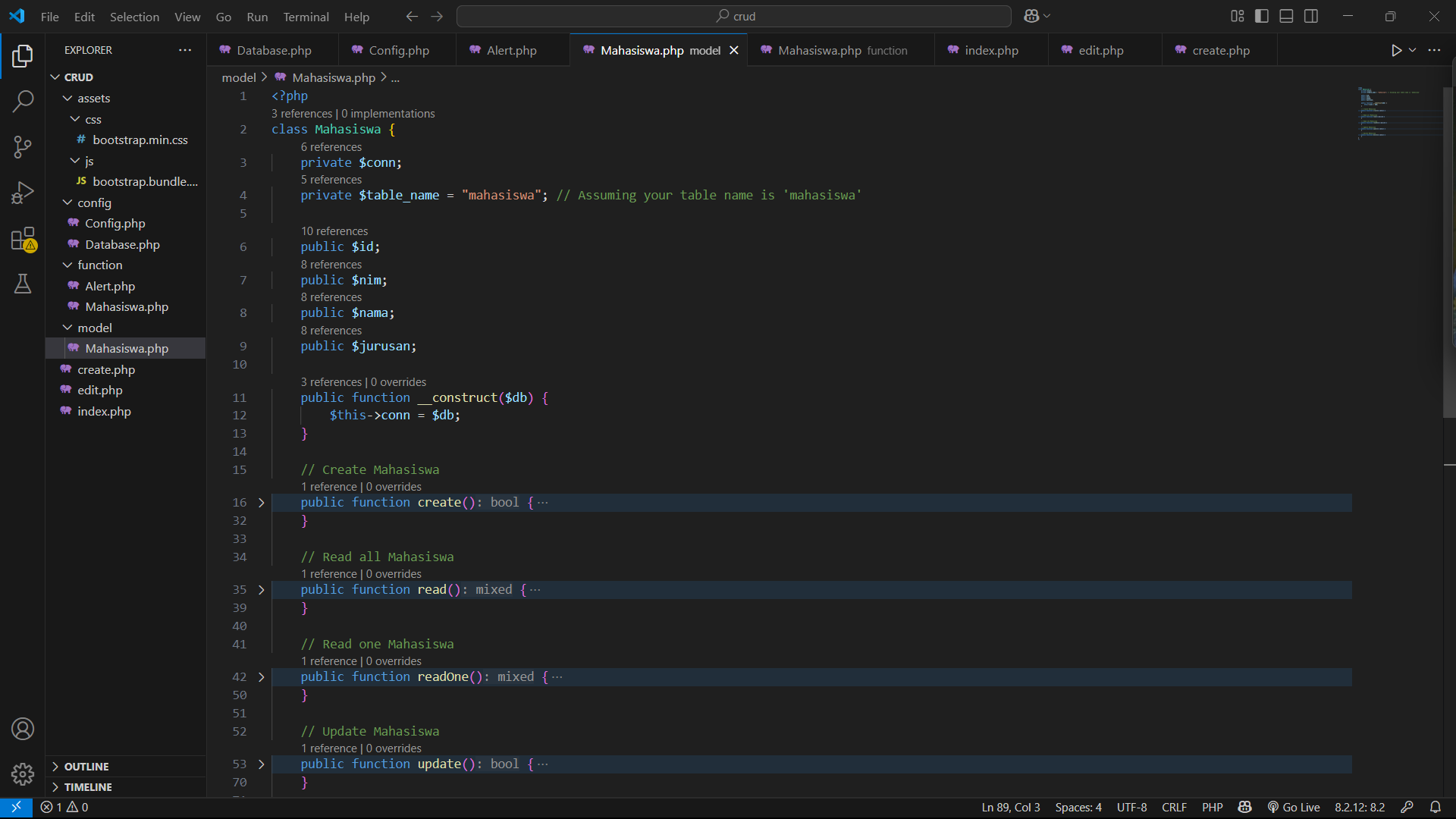 7. Buat model mahasiswa yang nantinya akan digunakan untuk menjalankan fungsi crud